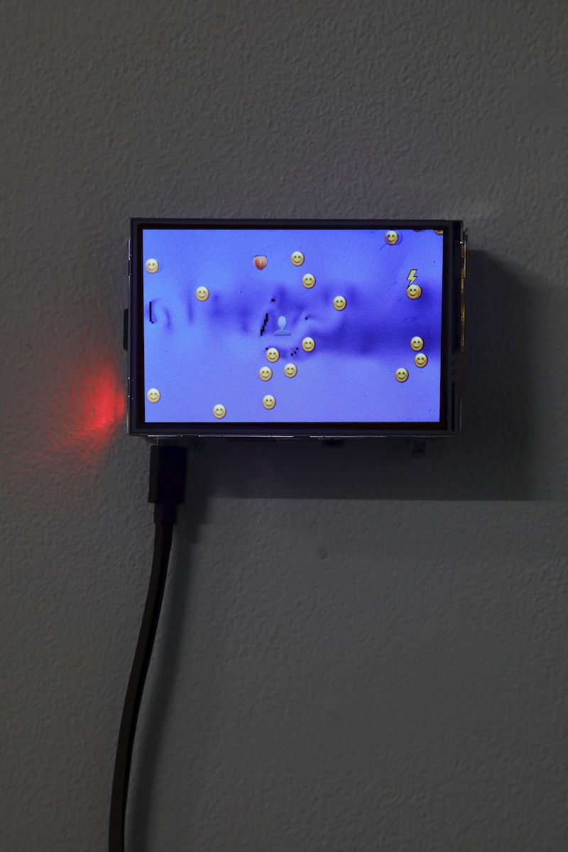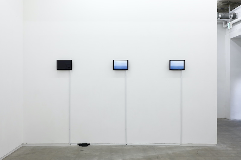 映像、10.1 inchモニター 説明: 神奈川県逗子にある一色海岸で撮影した海の映像を、YouTubeにアップロードしたのち等倍速再生したものをキャプチャした映像《x1》、YouTubeの倍速再生機能を用いて2倍速再生したものをキャプチャした映像《x2》、2倍速再生した映像から等倍速再生した映像を(一コマ飛ばしで)引き算した映像《Diff》から構成される作品。