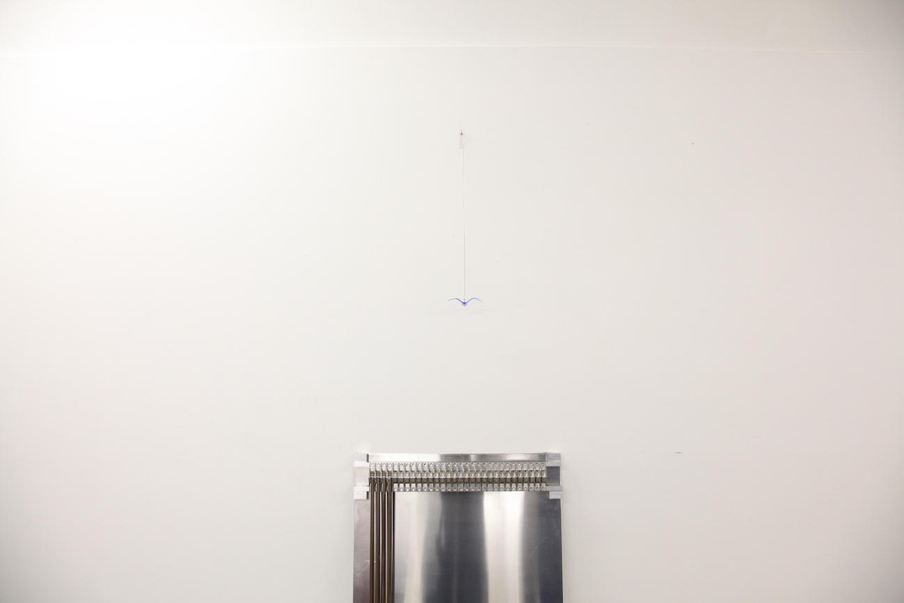 会場一階には5つの管が壁に立てかけられている。各管には音として6bitのデータが保存されている。6bitのうち3bitには音の高さが、残りの3bitには音が減衰していくまでの時間がコードされている。これが5本あるため5つの音高からなる和音がこの装置には保存されているという状態になっている。会場に響くパイプオルガンのような音はこうした方法によって保存されており、現在このデータはopensea上でオークション形式で出品されている。このオークションは本展示の終了日時2022年1月23日19:00に終了する。会期終了後、作品をストレージしている音響遅延メモリーは解体搬出されてしまうため同時にデータ自体も消失する。そのためこのNFTアートの所有者は、作品を所有していたという履歴だけを所有する。