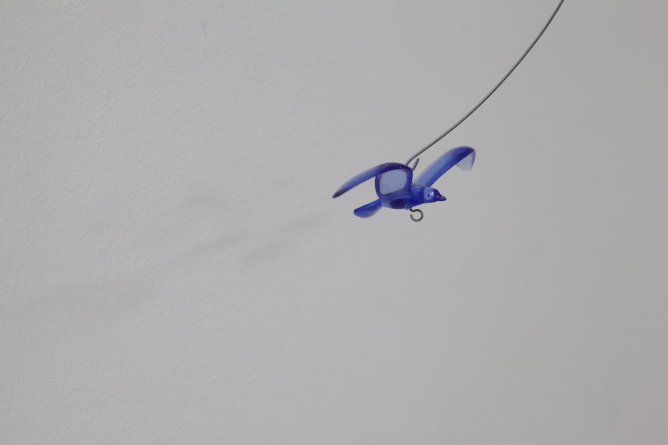 装置の上にはプラスチックで出来たカモメの模型が装置の上を飛んでいるような形で配置されている。